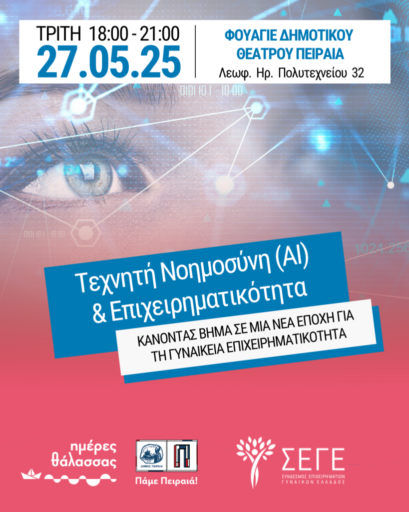 Ο Δήμος Πειραιά και ο Σύνδεσμος Επιχειρηματιών Γυναικών Ελλάδος Σ.Ε.Γ.Ε., σας προσκαλούν να συμμετάσχετε σε μία εκδήλωση αφιερωμένη στη Γυναικεία Επιχειρηματικότητα και τη δυναμική της Τεχνητής […]